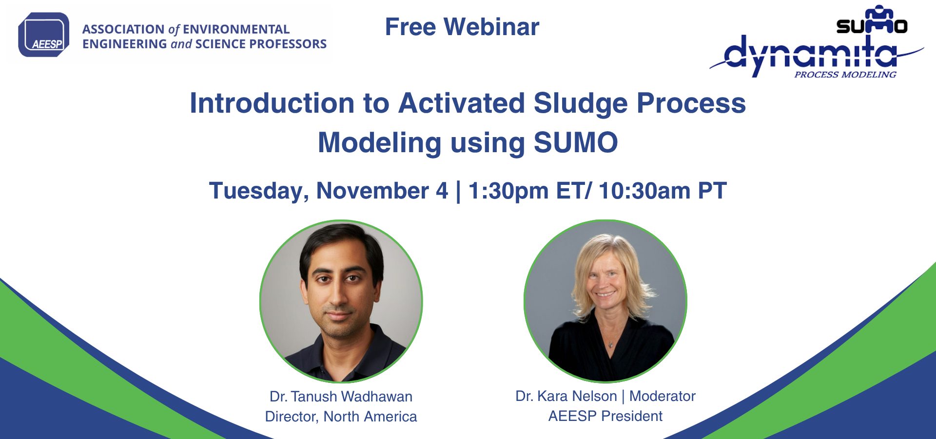 On Tuesday, November 4, join AEESP and Sustaining Member Dynamita for a free webinar demonstrating the use of process modeling software to explore the fundamental wastewater engineering relationships between typical operational and design parameters and their impact on a wastewater treatment plant's performance. Register here.